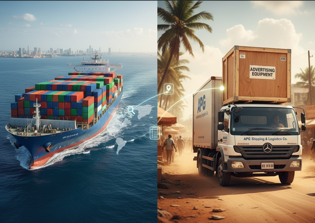 APG Shipping & Logistics: Specialized logistics managing the China to Ghana trade route. Includes Air/Maritime Freight, Customs Clearance, and secure delivery of commercial goods.